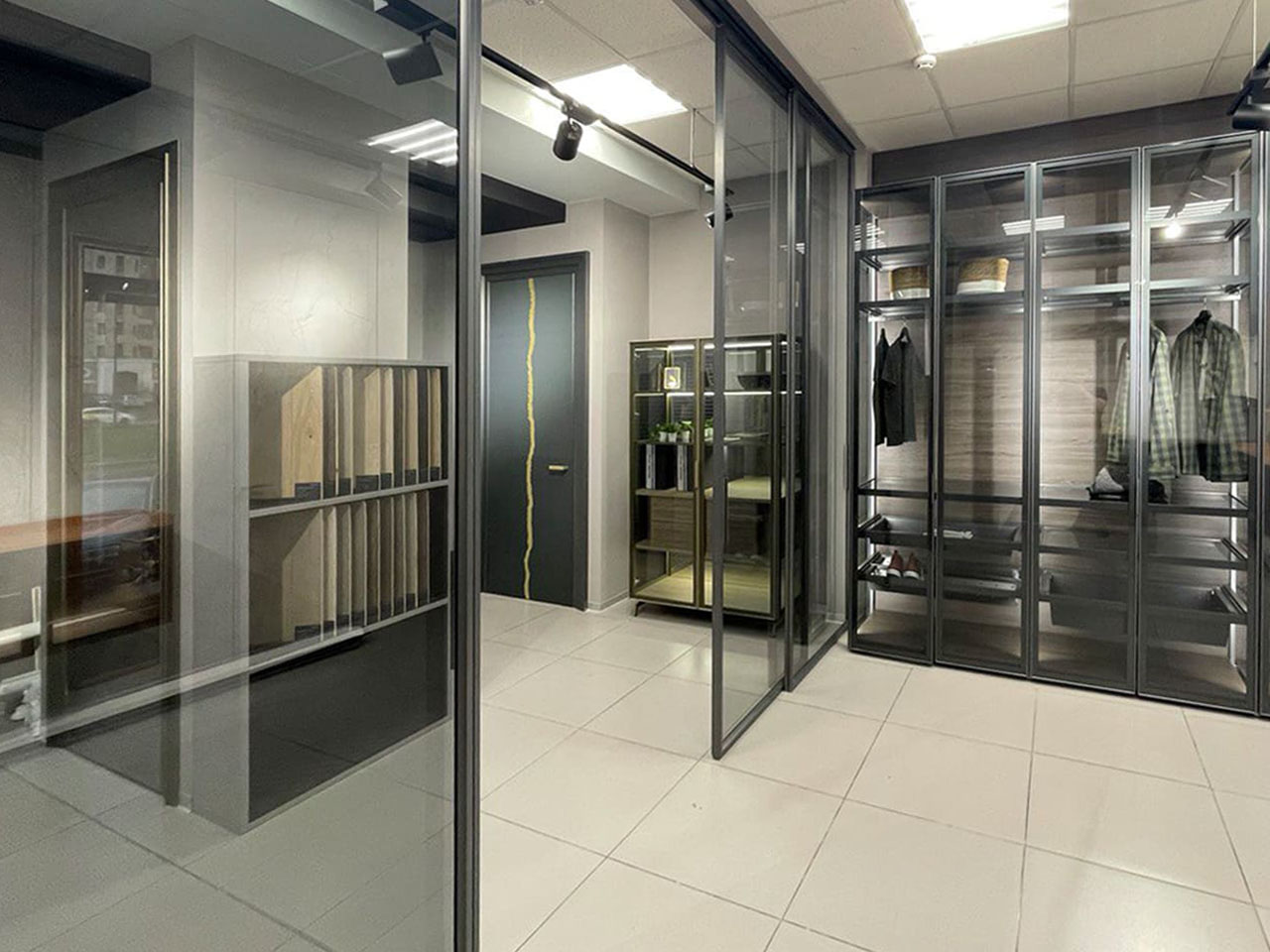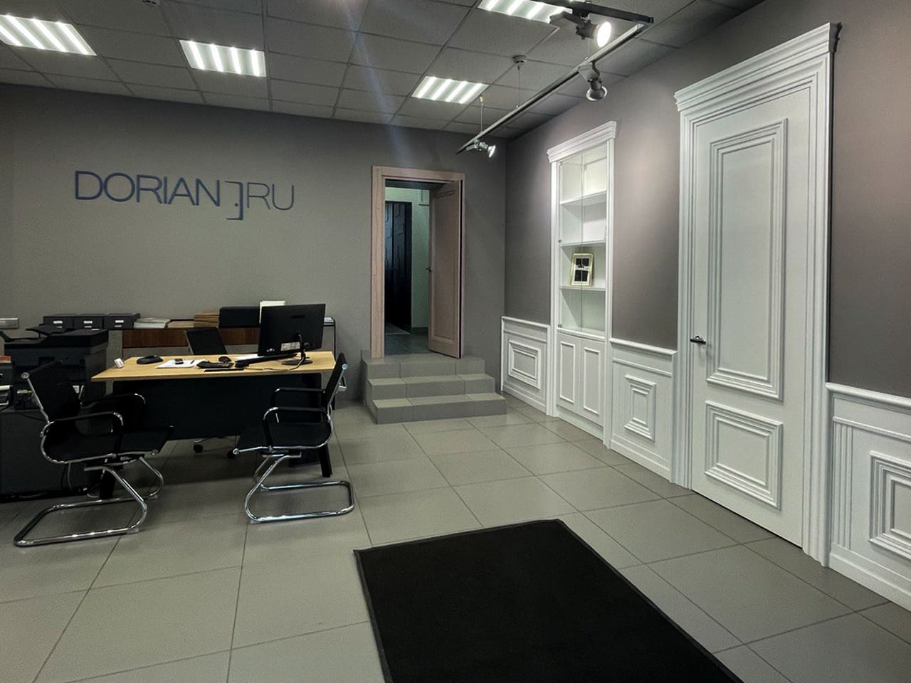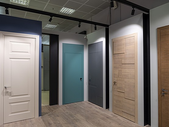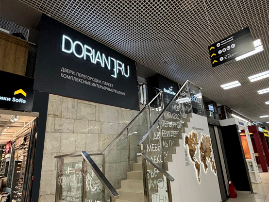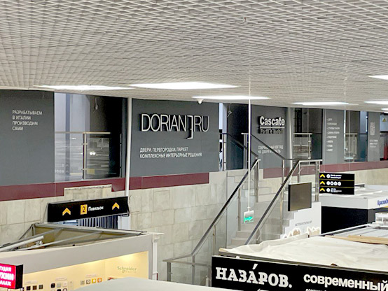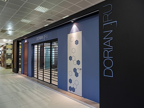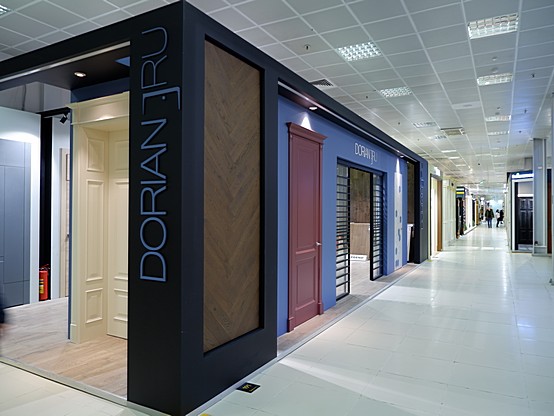 Большой салон DORIAN – 350 м2: максимальный выбор эмалевых и шпонированных дверей, дверей и мебели из алюминия, паркета, входных дверей.